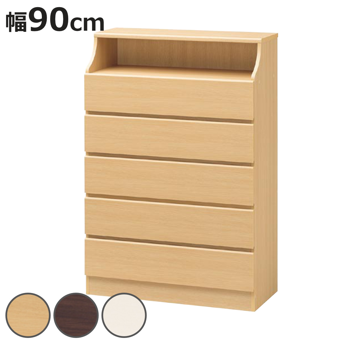 ■チェスト 幅90cm 5段 オープンスペース付 シンプルデザイン CHESCA ( リビングチェスト 収納 棚 収納棚 サイドチェスト たんす タンス