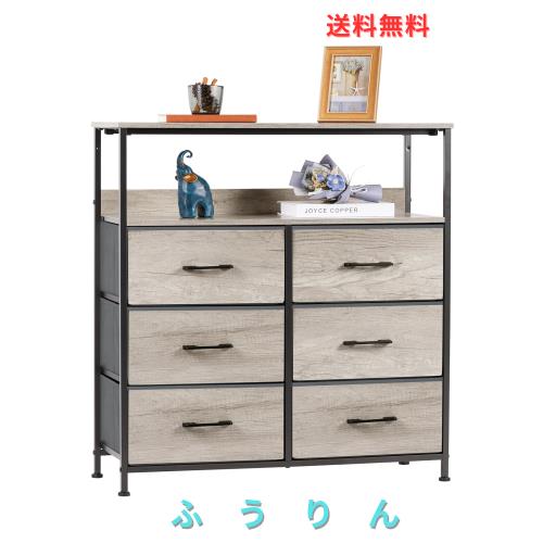 ■LYNCOHOME 棚付き収納チェスト グレージュ タンス キャビネット 布製引き出し 衣類収納 リビング収納 低ホルム 北欧風 3段6杯【幅80×奥