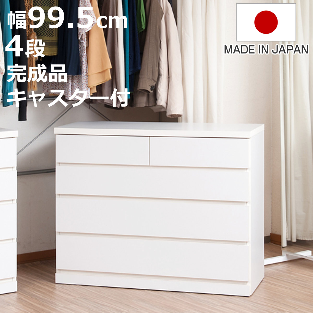 ■クローゼット収納 タンス 幅99.5cm 4段 奥行40cm キャスター付 日本製 ( クローゼット 押入れ 収納 押入れ収納 完成品 組立不要 すぐ使