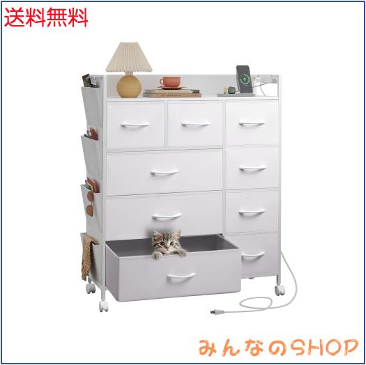 ■WLIVE チェスト タンス 収納 コンセント付き ファブリックチェスト USBボード キャスター付き サイドポケット付き 洋服収納 4段9杯 箪笥