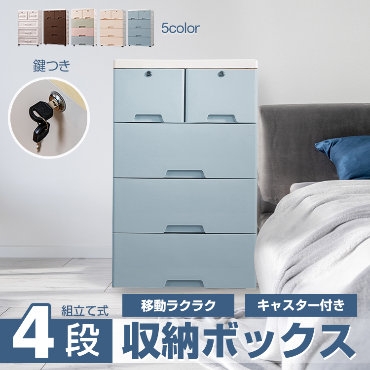 ■新生活 収納ボックス 収納ケース 4段 タンス チェスト プラスチック 鍵つき 組み立て式 整理 ny422