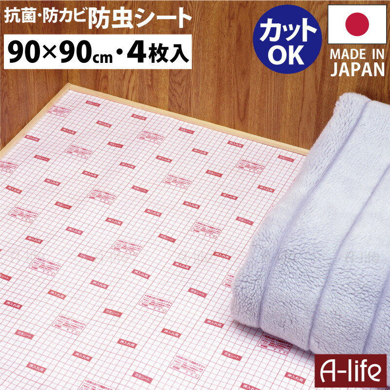 メール便 ポスト投函 日本製 カットOK 防虫シート 防カビ 抗菌加工 収納シート 90cm×90cm 4枚入 押入れシート おしゃれ シート 保護シート