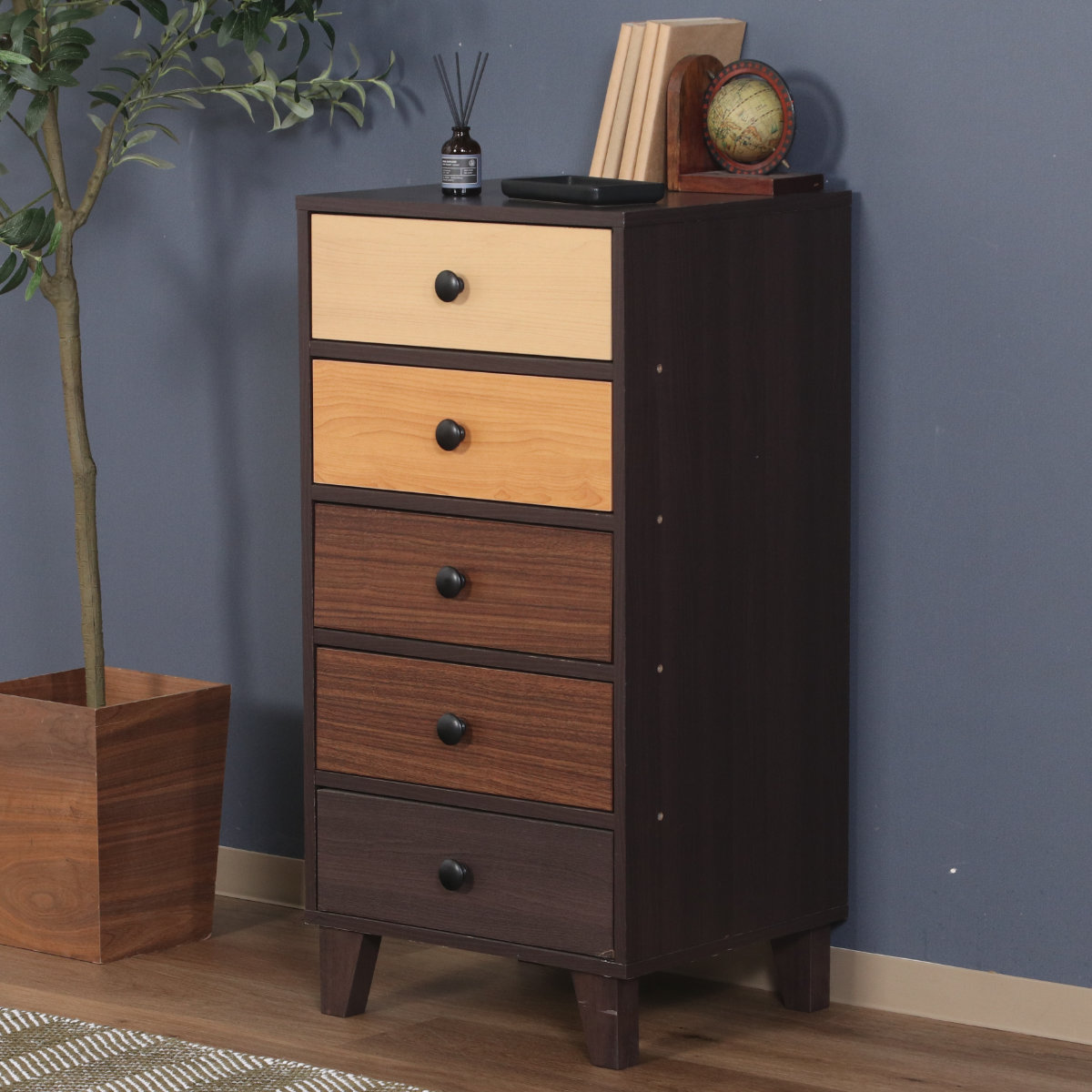 ■チェスト 幅44.5cm 5段 北欧風 4カラー前板 ( サイドチェスト リビング収納 たんす タンス スリム リビングボード リビングチェスト 収
