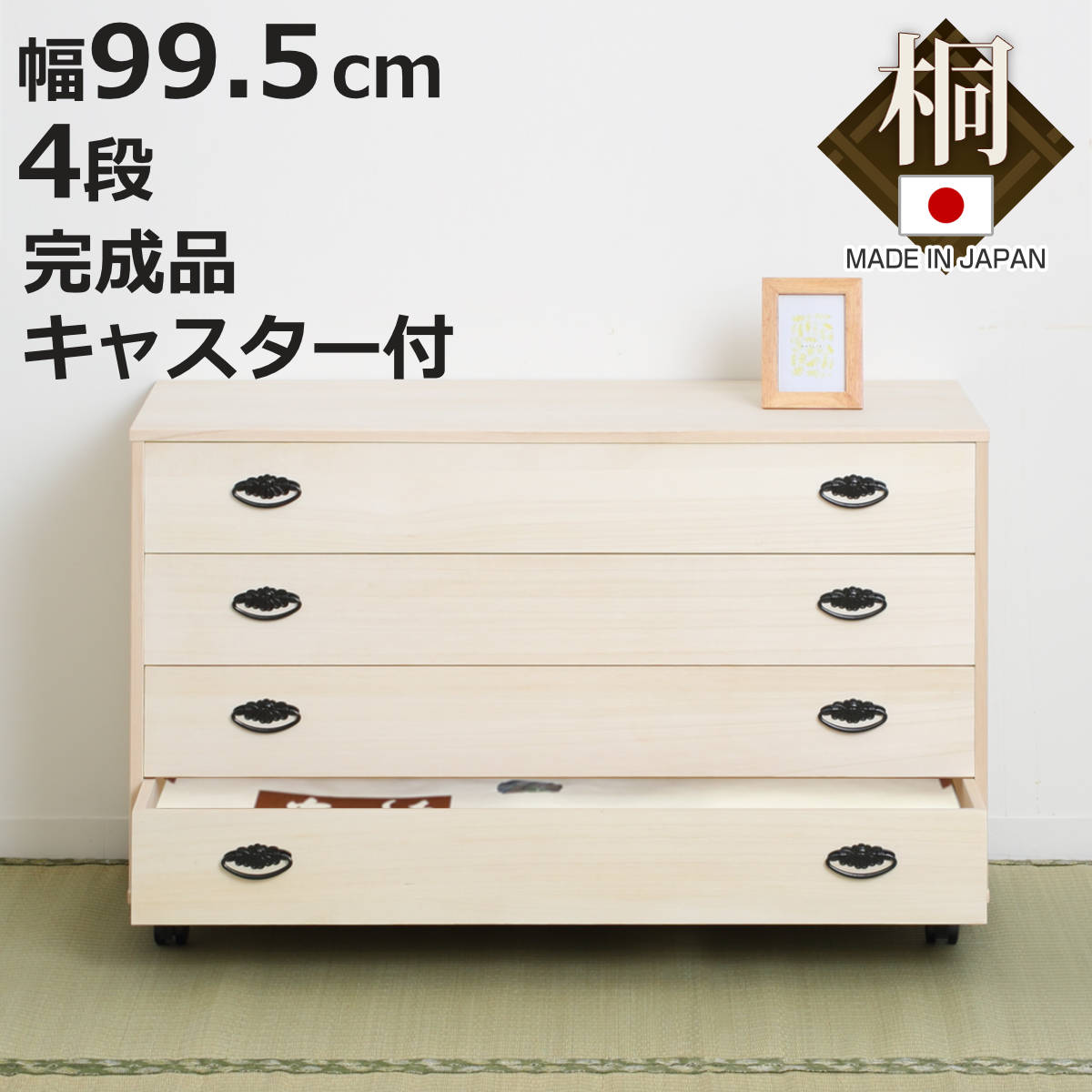 自然塗料を使ったグレーの色は、少し薄めの色合い。上品な色味が和風・洋風どちらにも馴染むモダンなスタイルです。小物から普段着、たとう紙に入れた着物までゆったりと収納ができます。新潟県産桐(津南町、新発田市)の桐を使用。丸太仕入れから制作まで一貫して伝統的な制作を行っています。国で認定された伝統工芸士が最後まで制作する伝統的な仕事です。【「桐の蔵」について】全国の桐箪笥生産70%以上を誇る新潟県加茂市。桐丸太の仕入れから制作を手掛けている。昭和23年創業、全国優良家具展二年連続「優秀賞」受賞。多くのテレビ、雑誌、新聞等で取材され、全国から直接工房を訪れるお客様が後を絶たない。三代続く伝統的な桐箪笥の制作工房。