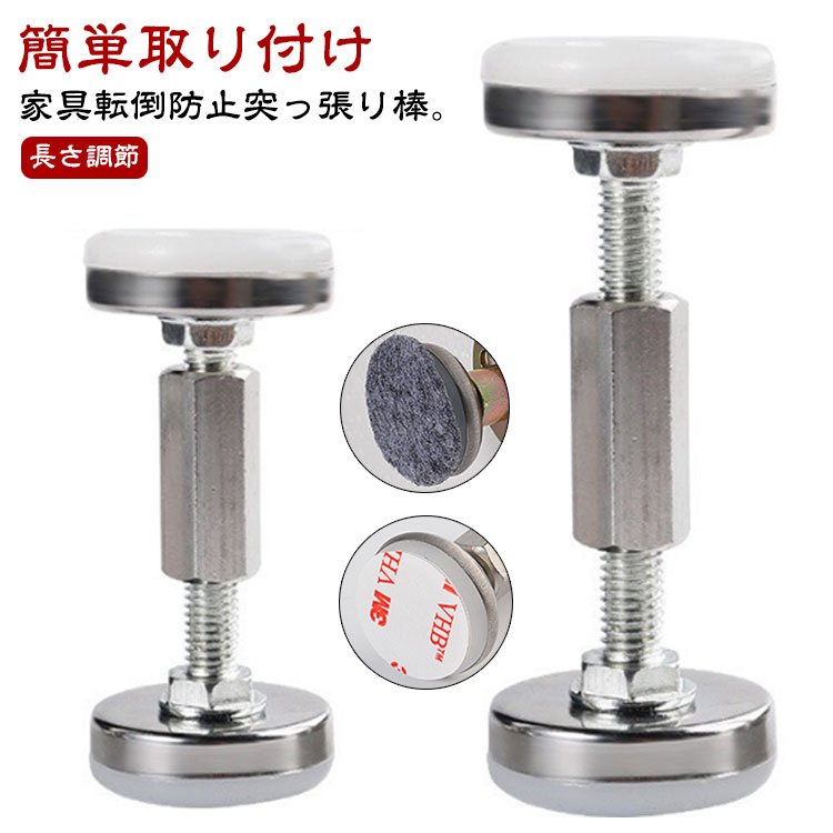 食器棚 2本セット 伸縮棒 防災グッズ タンス 家具転倒防止つっぱり棒 突っ張り棒 防災グッズ 耐震 取付高さ4.2?11cm 保護パッド 両面テープ付き 狭い隙間用 耐震ポール 地震対策 テーブル 棚 冷蔵庫 本棚 家具転倒防止