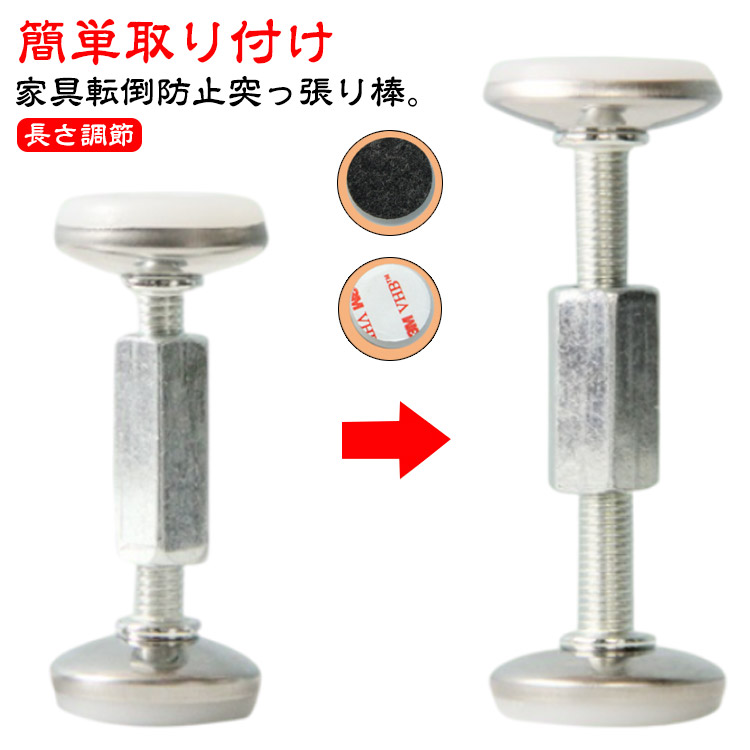 ■家具 本棚 転倒防止 短い 突っ張り棒 家具転倒防止突っ張り棒 保護パッド 狭い隙間用 4本セット 家具転倒防止 タンス テーブル 食器棚 つ
