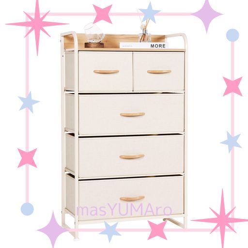 ■LYNCOHOME チェスト タンス 収納ボックス ベージュ 布製 引き出し 一人暮らし おもちゃ 衣類収納 マルチ収納 転倒防止 低ホルム スリム 4