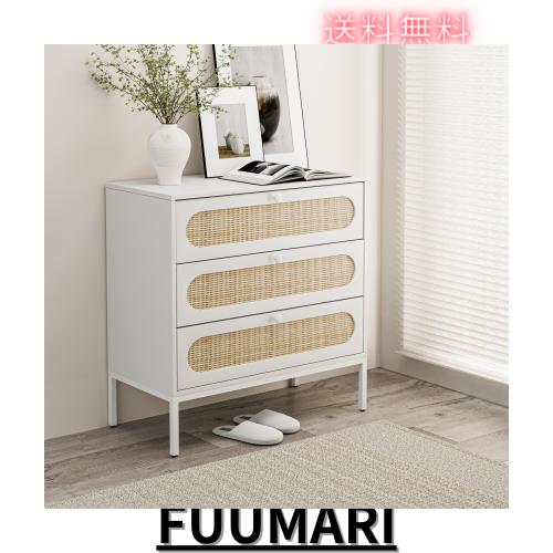 ■IKIFLY 収納チェスト 引き出し 木製 タンス チェストラタン調 キャビネット 3段階引き出し サイドボード 衣類収納 リビング収納 リビング