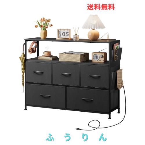 ■WLIVE チェスト タンス 2段棚付き収納 コンセント付き USBボード キャスター付き サイドポケット付き 2段5杯 箪笥 ローチェスト リビング