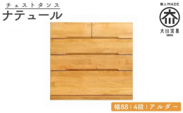 ■【ふるさと納税】チェスト タンス 幅88 4段 奥行44 アルダー 無垢 桐たんす 箪笥 婚礼 衣類収納 大川家具 丸田木工 ナテュール