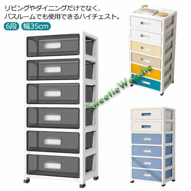 チェスト スリム 6段 幅35cm 収納ケース 引き出し リビングチェスト プラスチック収納ボックス タンス 衣装ケース クローゼット ハイ チェスト サニタリー キッチン収納 キッチンワゴン すき間収納 ラック 棚 一人暮らし 洗面所