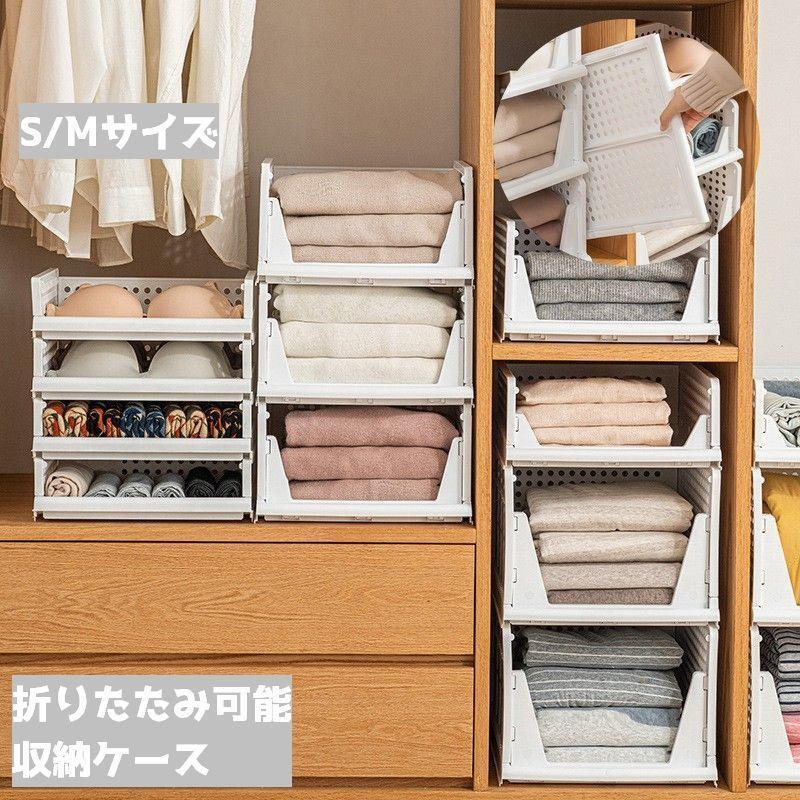 ■収納ケース 引き出し 折りたたみ S M 積み重ね可能 収納ボックス ホワイト 単品 衣類 衣装 押し入れ クローゼット タンス リビング キッ