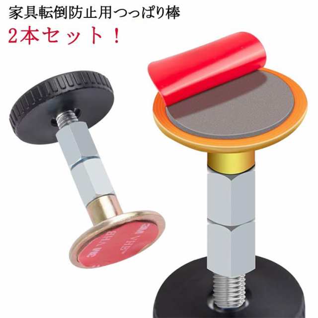 ■耐震 タンス シルバー 強力粘着 テーブル 転倒防止 家具転倒防止 突っ張り棒 短い 食器棚 突っ張り棒 保護パッド 家具固定用 長さ調節 ベ