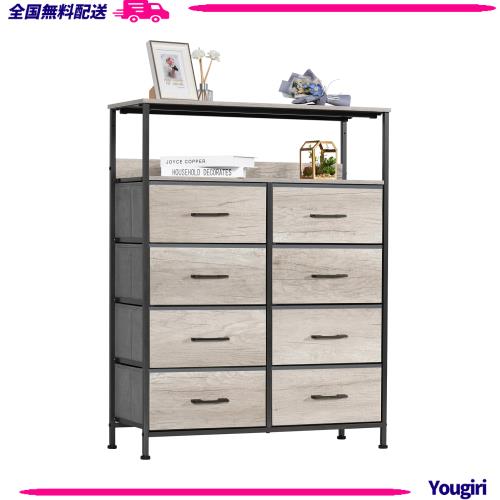 ■LYNCOHOME 棚付き収納チェスト グレージュ タンス オシャレ 布製引き出し キャビネット 衣類収納 リビング収納 低ホルム 北欧風 4段8杯【