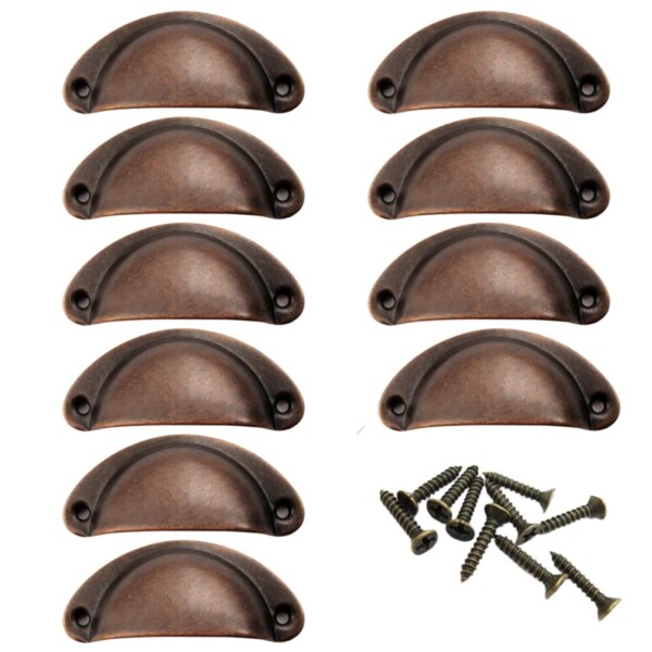 ■ANDAZURE 10個セット アンティーク取っ手 ブロンズ 引き出し シェル型ハンドル ネジ付き DIY家具用 金具 キャビネット タンス 扉用 (レッ