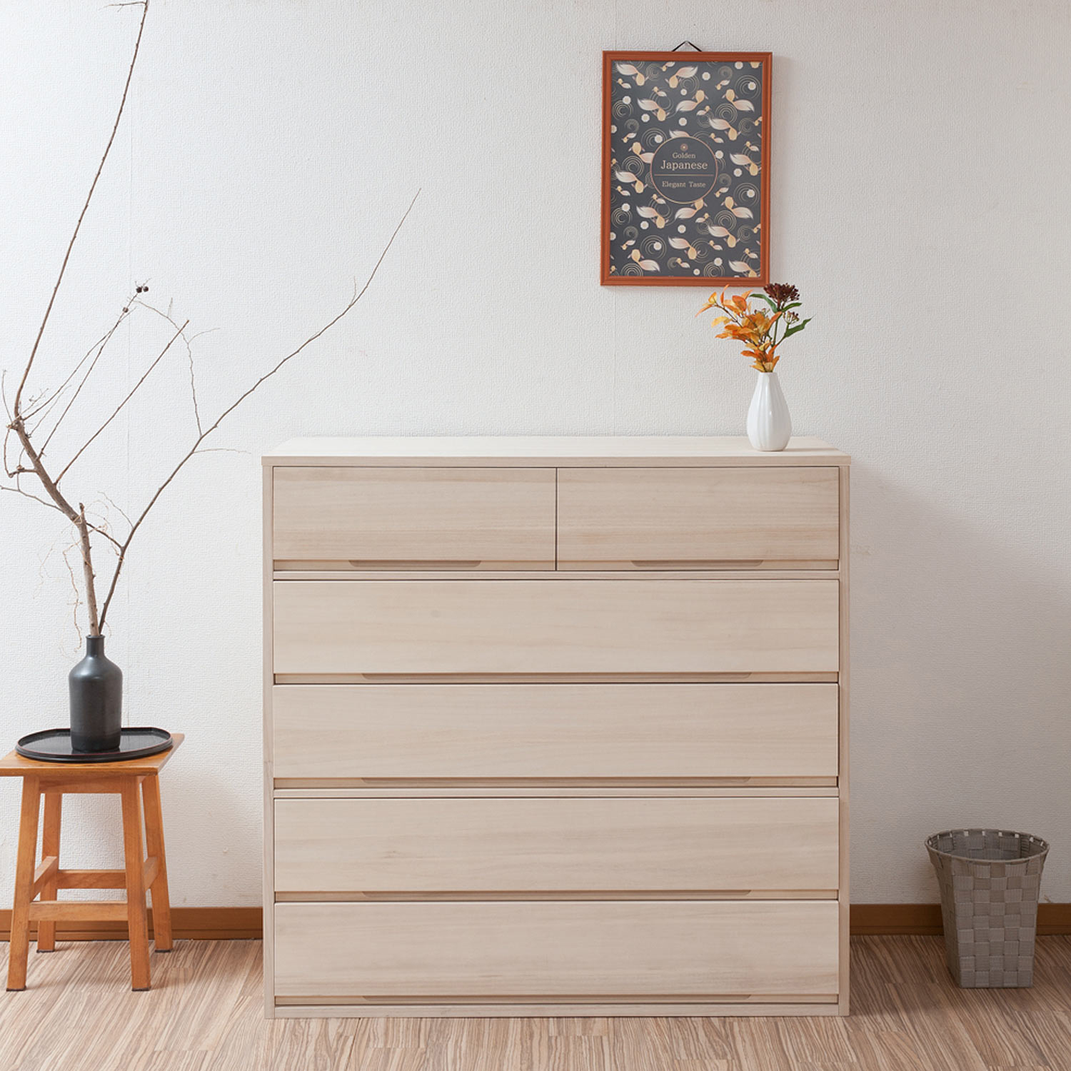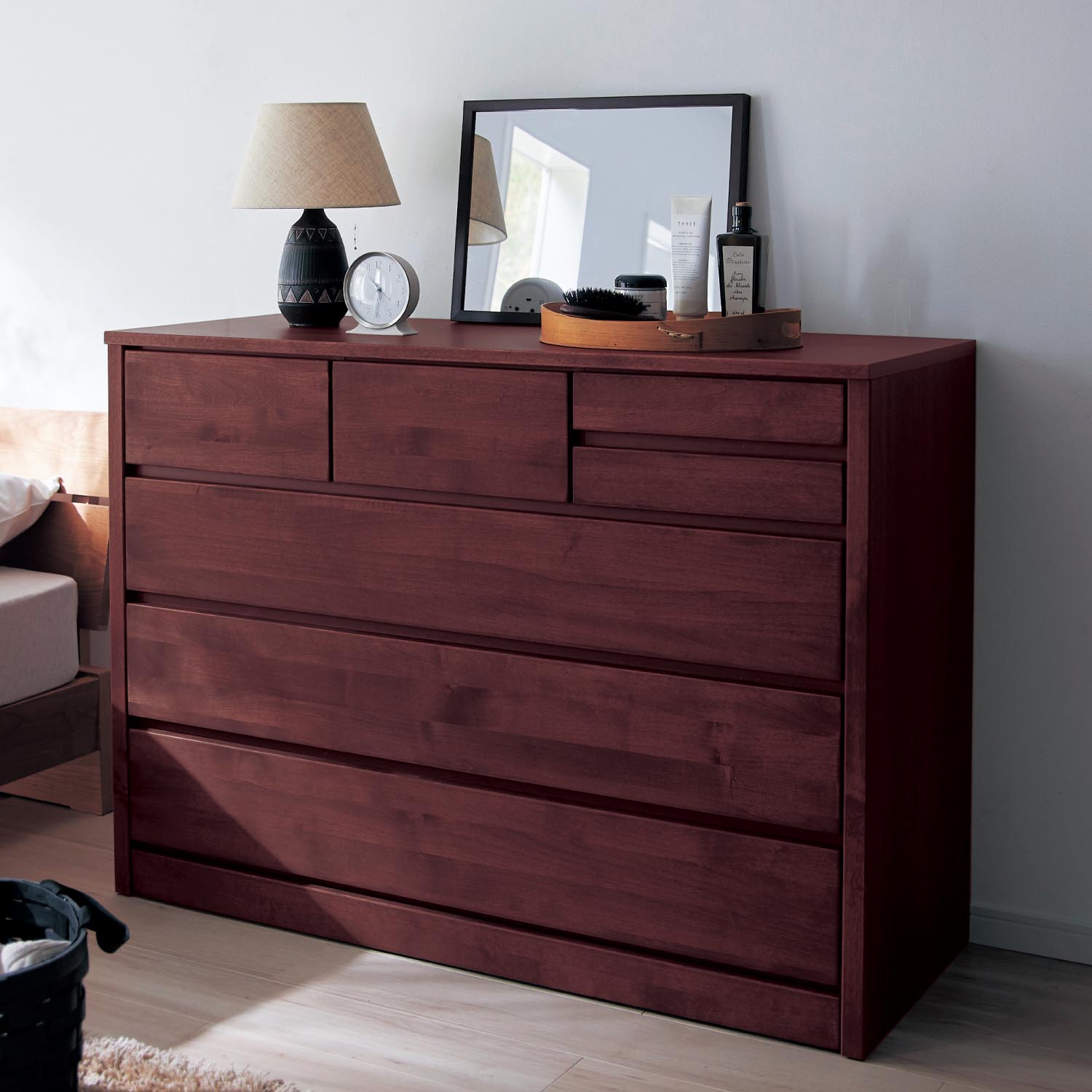前板に上質感たっぷりのアルダー材を使用し、自然オイルでナチュラルに仕上げた衣類チェスト大小の引出しで整理しやすく、大引出しは軽い力で出し入れできるスライドレール式になっています省スペースで置けるサイズから大容量サイズまで、お好みに合わせて選べる8サイズ展開明るい「ナチュラル」とシックな「ダークブラウン」の2色から