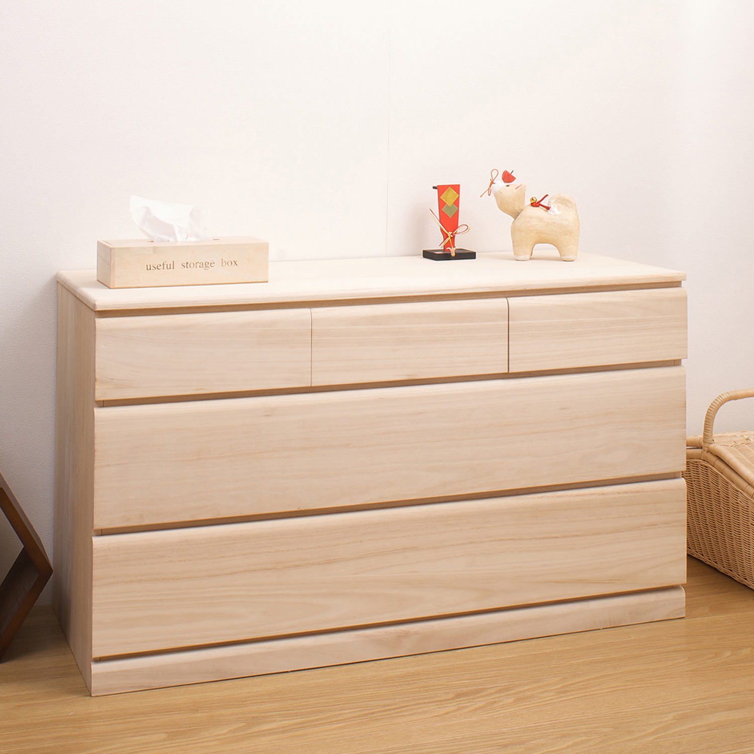 国内工場で丁寧に仕上げた桐チェスト。たとう紙の入るワイドサイズは、着物や浴衣の収納に最適です。和室にも洋室にも合わせやすいナチュラルな色合い調湿性と気密性に優れた桐材を使用桐材の特性を活かすために桐を熟知した職人が製作上段は小引き出しで整理しやすいお部屋に堂々と置ける美しさクローゼット内にも収まって置き場所を選ばない隠しキャスター付きで移動がスムーズ