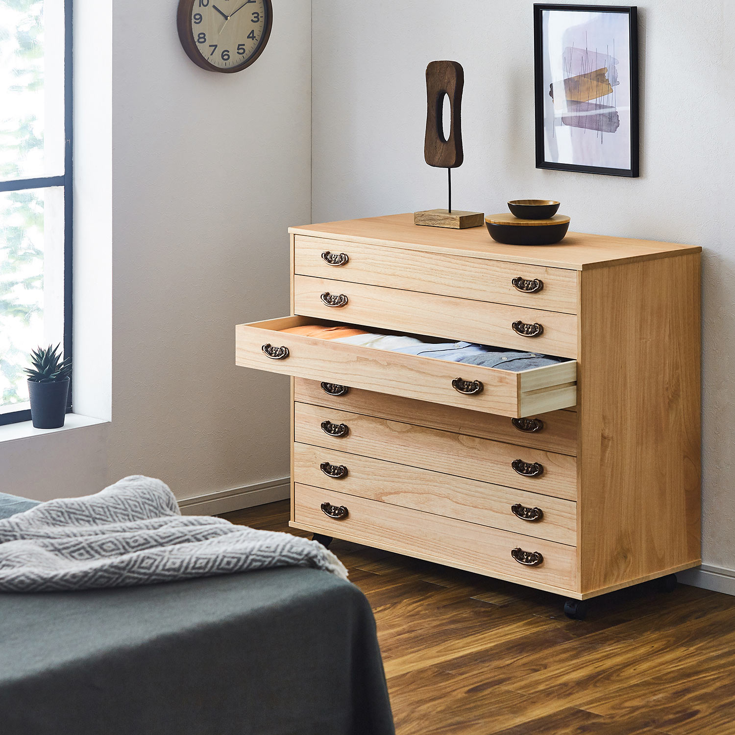 調湿性と気密性に優れた桐材を使用桐を熟知した職人が製作上段は小引き出しで整理しやすいお部屋に堂々と置ける美しさクローゼット内にも収まって置き場所を選ばないくまのプーさんとミッキーマウスの焼印モチーフがアクセント隠しキャスター付きで移動がスムーズベルメゾンだけでお買い求めいただけるオリジナル商品国内工場で丁寧に仕上げました。たとう紙の入るワイドサイズは、着物や浴衣の収納に最適です。和室にも洋室にも合わせやすいナチュラルな色合いに、上品なモチーフを焼印で載せました。
