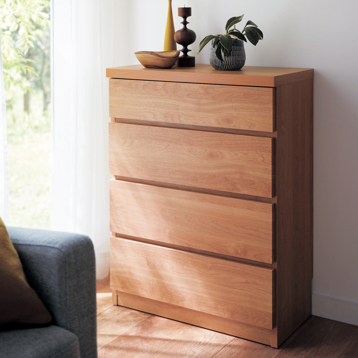 奥行30cmとスリムな衣類収納チェスト上質感のある木目調シート仕上げでお手入れもラク取っ手のないシンプルなデザインは、どんなお部屋にもすんなり馴染みますまた小物整理に便利な浅めの引出しを最上段に備えました寝室だけでなく、リビングやワークルームなどにも置いて使えますカラーは木目調が美しい「ホワイト」「ナチュラル」「ブラウン」の3色それぞれ幅3サイズ、高さ2タイプからお選びください