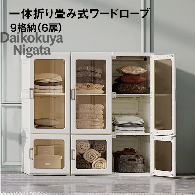 ■ワードローブ 一体折りたたみ式 9格納(6扉)洋服ダンス ワイドロッカー クローゼット ロッカー 収納ケース 収納 衣類 洋服 新生活 おし