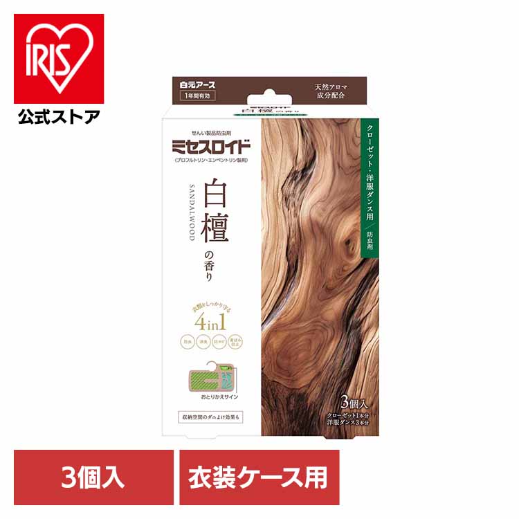 ■ミセスロイドクローゼット・洋服ダンス 3個 1年防虫 白檀 防虫剤 白檀 サンダルウッド 白元アース ミセスロイド 消臭 防カビ 1年 クロー