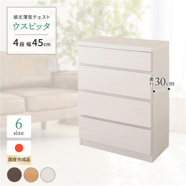 引き出したくさんで小分け収納が可能な多段チェスト。整理整頓は勿論、衣類・下着類の型崩れもしにくく快適な衣類管理が可能に。衣装持ちさんやおしゃれなランジェリーを集めている方にぴったりな洋服タンスです。大切なお洋服を守るための機能性や衣替えのしやすさもポイントです。整理整頓しやすい引き出したくさんの多段チェストどんどん増える衣類と下着類。大きな衣装ダンスはたくさん物が入って便利ですが、分類収納が大変で中身がごちゃつくことも。そのためには初めから小分けされた引き出しが便利。引き出しごとに分類収納すれば、中身がきれいに整理されるだけでなく、衣類や下着類の型崩れもしにくく一石二鳥です。シンプルな外観とトレンドのシックなカラーに、収納物に配慮した機能性が魅力の衣類収納チェストです。分類収納も楽々。下着やランジェリー類の型崩れも防ぐ引き出しのサイズがこだわり■向かって右側の幅の狭い引き出しは内寸がおよそ27cmでランジェリーがちょうどよく収まる幅サイズに。■お気に入りの下着は型崩れさせず大事にしまっておきたいもの。綺麗に重ねて並べれば安心に収納できるのでおすすめです。■そのほか、幅の狭い引き出しは靴下やショーツ、キャミソールなどのインナー類の収納にお勧めです。季節や色、家族それぞれの物を分類すれば管理も簡単です。収納物に配慮した、こだわりの機能性で衣類を大切に守ります■引き出し内部は清潔感のあるホワイトカラーで化粧を施し、収納物に配慮しました。■本体の地板は奥までしっかり幅を持たせることで、収納した衣類の引っ掛かりを軽減。本体の強度をより高める効果も。■引き出しには開閉・出し入れがスムーズなコロ付きスライドレールを採用。■コロ付きスライドレールは引き出しの取り外しが簡単なのが魅力。■幅が同じ引き出しはすべてサイズが共通なので、引き出しごと入れ替えて、オフシーズンのアイテムもスムーズに衣替え。大容量の収納力で、手持ちの衣類をまとめて収納。選べるサイズバリエーションも魅力。■設置した居場所・お手持ちの衣類に合わせて選べる6種類のサイズバリエーション。■本体奥行き45cmのたっぷりとした大量収納でこれ一台で畳みものの衣類と下着類をまとめて収納が可能です。トレンドインテリアから定番まで。シンプルデザインでもおしゃれに決まる3色のバリエーションチェストらしいシルエットやサイズ感はそのままに、おしゃれなインテリアスタイルを損ねないカラーバリエーションでご用意しました。なりたいお部屋のスタイルや、お住まいのお部屋の内装に合わせてお選びいただけます。ホワイト木目わずかにアイボリー色がかったホワイトカラー。遠目では目立たない程度の木目柄で、壁紙クロスにも馴染む定番のカラーです。圧迫感を感じさせず狭いお部屋・狭い家に設置するのであればこちらがおすすめ。王道のシンプルなインテリアから、北欧インテリア、ナチュラルベーシックなウォークインクローゼット等幅広く活躍するカラーです。グレーウォールナット天然木調ウォルナット柄にわずかにグレーがかったダークブラウン系で、昨今の新築の住宅やマンションに多い建材に合わせたカラー。木目調ながらクールでモダンな印象で、生活感を感じさせないヨーロピアンスタイル・ヨーロッパ風のワードローブやモノトーンインテリア、アンティーク風なワードローブのアクセントとして映えるカラーです。ブラック木目シックな木目柄に黒いカラーで落ち着いた大人な雰囲気。こちらもホワイト木目と同じく、光の当たり具合によってはあまり木目柄は目立たずマットブラックにも見えるお色です。シャープな印象でブルックリンスタイル、ヴィンテージやインダストリアルスタイルなどの個性的なクローゼットを演出できます。和室や和モダンな雰囲気の寝室にもマッチします。信頼と安心の国内工場での生産品の衣類収納箪笥・衣類収納チェスト■国内の職人がひとつずつ丁寧に仕上げた日本製のワードローブ・衣類タンスです。■細部の丁寧な仕上がりなど、国産品ならではの高品質な洋服タンス・衣装ケースをお楽しみください。面倒な組み立てのいらない完成品■組み立て不要の完成商品でのお届けになります。届いたその日からすぐにご使用いただけます。