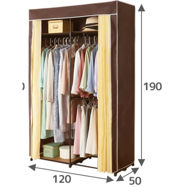 ■ハンガーラック 約幅118〜195×奥行55×高さ170cm ウォルナット 伸縮 クローゼット タンス 整理 収納 洋服ダンス ハンガー カーテン付 お