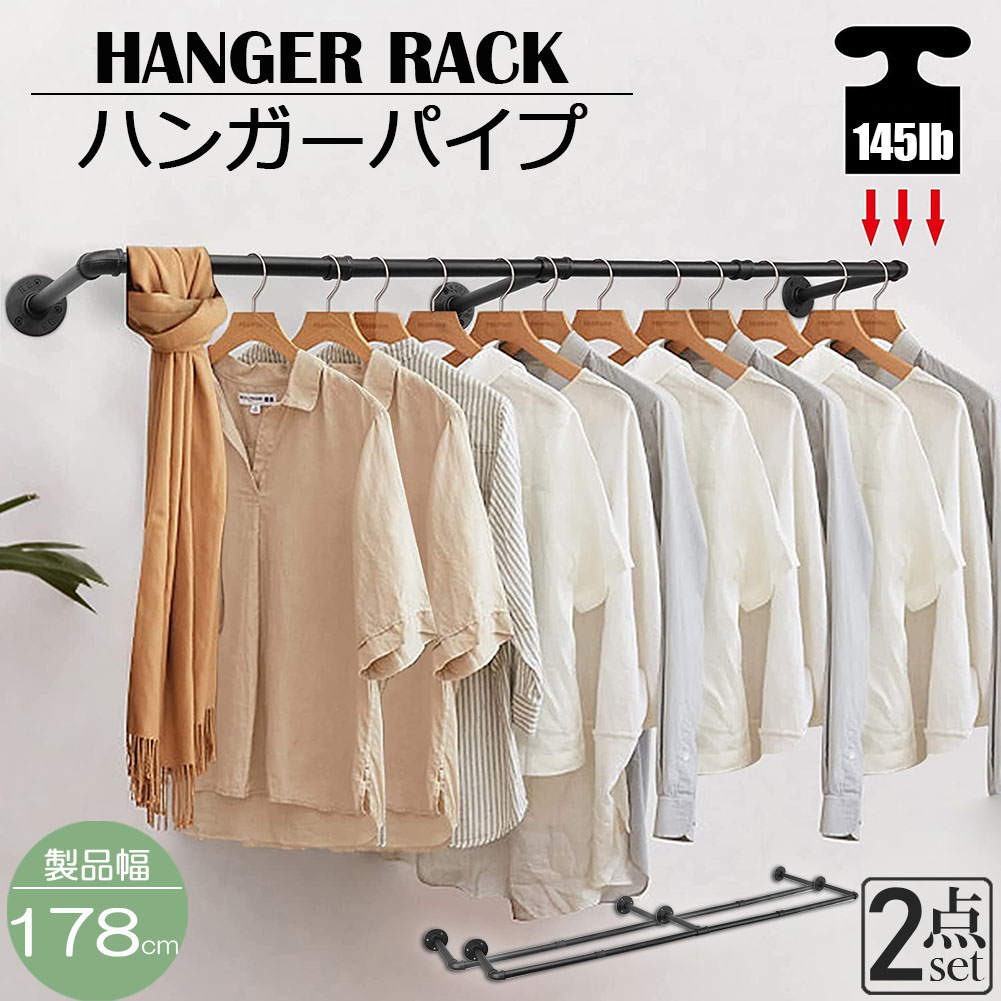 ■ハンガーパイプ ハンガーバー ハンガーラック 2個セット アイアンウォールハンガー パイプハンガー 壁付け 天井付け 洋服ラック ディス