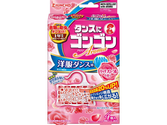金鳥/ゴンゴンアロマ洋服ダンス4個リッチフローラルの香り 大日本除虫菊 衣類の防虫とダニよけ!1年防虫