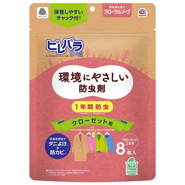 アース製薬 ピレパラアース クローゼット用 フローラルソープ 8個入 ハンガーにも吊るせる吊り下げ型 Earth Corporation あーすせいやく 防虫剤 防虫 忌避剤 忌避 虫 衣類 洋服 服 クローゼット 洋服ダンス タンス ハンガー 吊り下げ 吊る つるす 予防 防ぐ 保護 1年 フローラル ソープ 8個 8P 4901080148919 生活雑貨 生活用品 日用品 生活 雑貨 グッズ tool ツール 工具 整備 用品 506809260