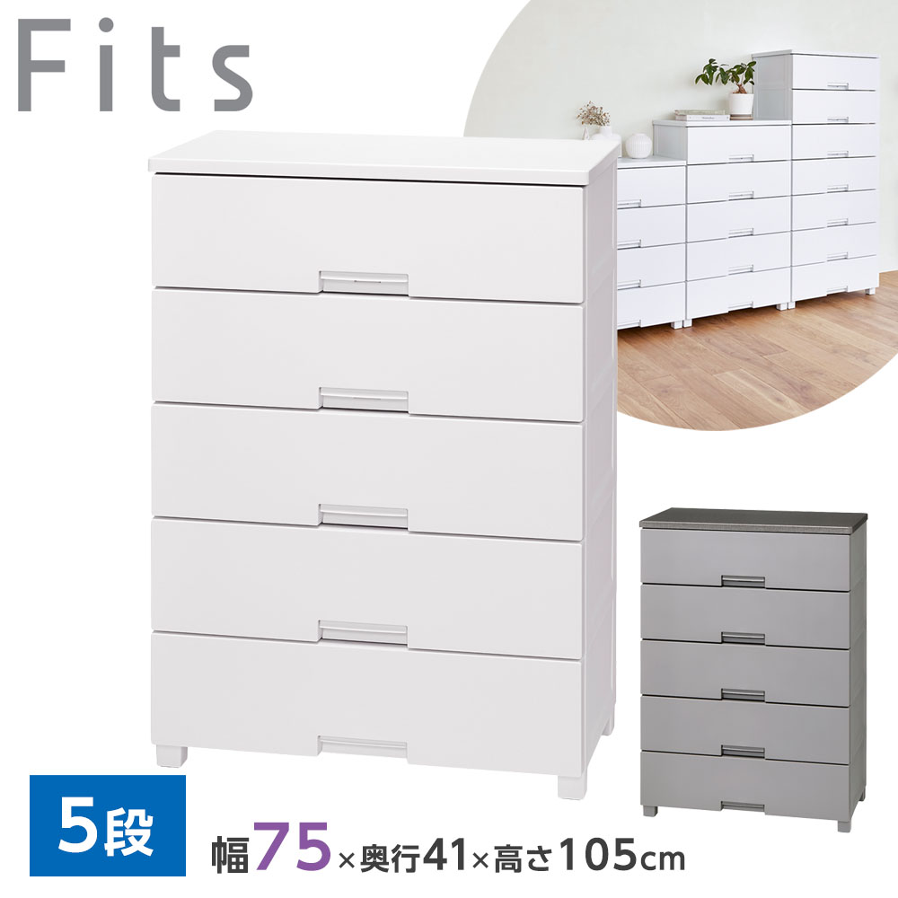 ■衣類ケース Fits フィッツチェスト 幅75cm 5段 7505 ホワイト/グレー | 天馬 洋服 収納 タンス 収納ケース 衣類収納 洋服ダンス 衣装ケ