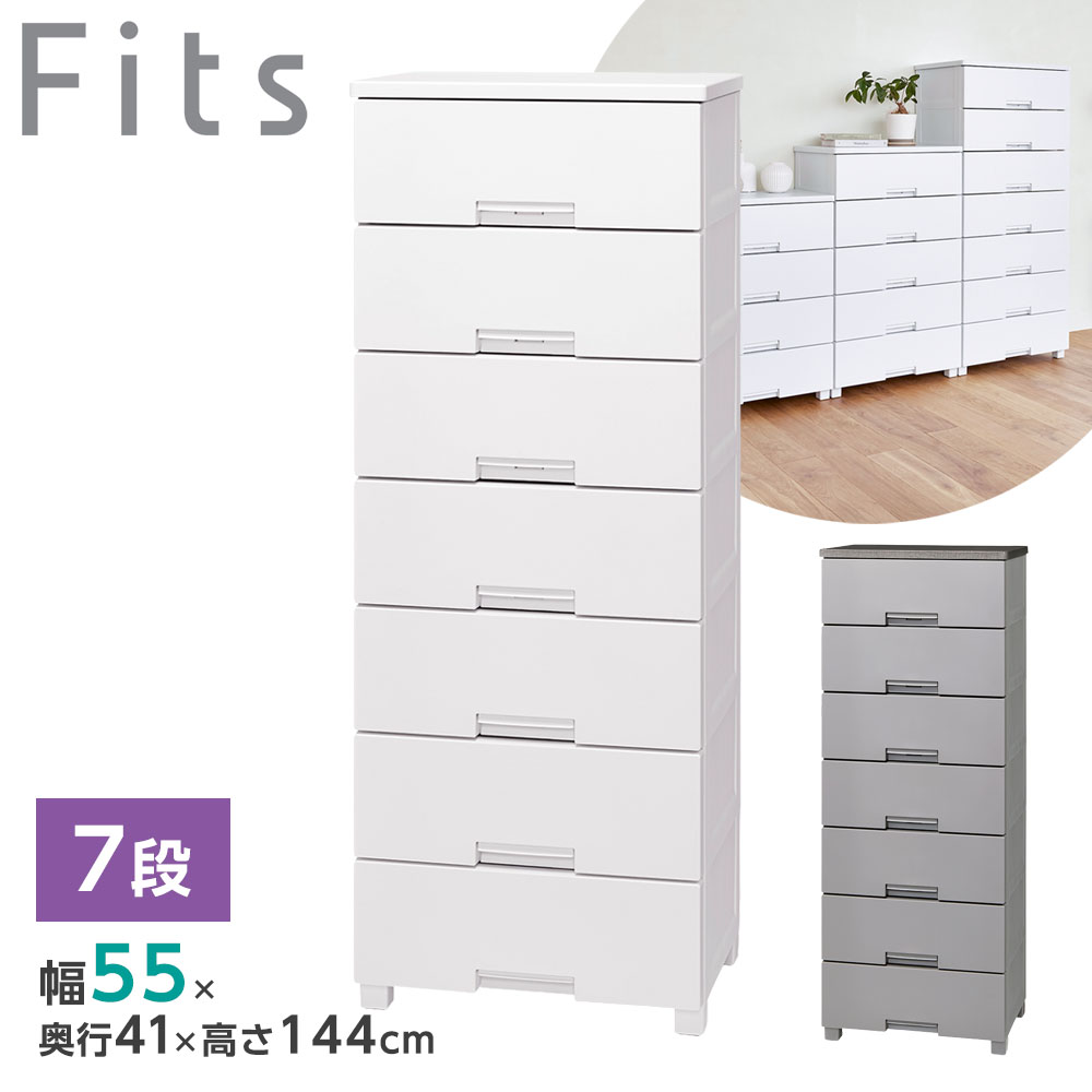 ■衣類ケース Fits フィッツチェスト 幅55cm 7段 5507 ホワイト/グレー | 天馬 洋服 収納 タンス 収納ケース 衣類収納 洋服ダンス 衣装ケ