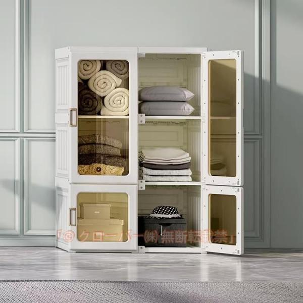 ■ワードローブ 一体折りたたみ式 洋服ダンス ワイドロッカー クローゼット ロッカー ハンガーラック 収納 衣類 洋服 新生活 おしゃれ 6格