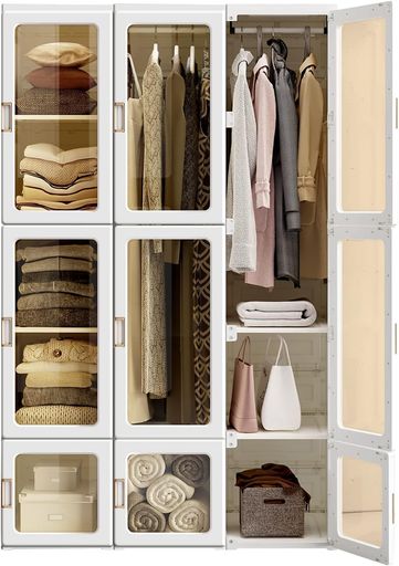 ■Mayi Box ワードローブ クローゼット 一体折りたたみ式 収納 扉付き 洋服ダンス ハンガーラック 大容量 衣類 雑物 防塵 省スペース 高耐