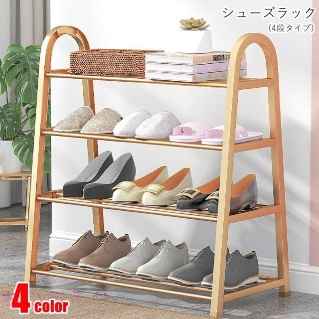 シューズラック シューズボックス 収納雑貨 インテリア 組み立て式 4段 無地 ブラック ホワイト ゴールドカラー シンプル カ