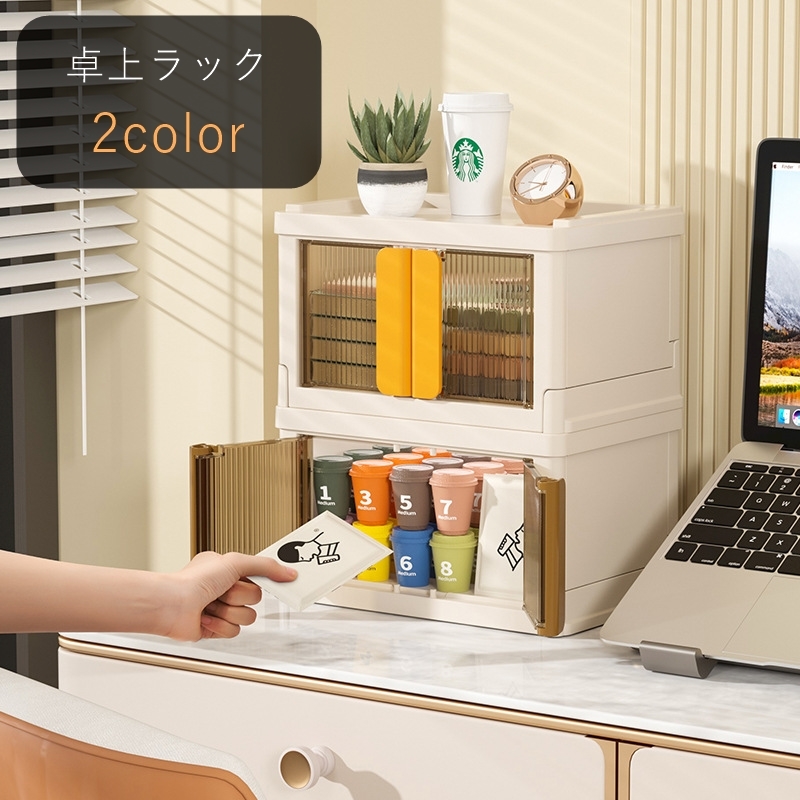 ■卓上ラック 机上ラック デスク収納 生活雑貨 収納雑貨 長方形 観音開き 横開き 上開き 重ねられる 積める 半透明 オフホワイ