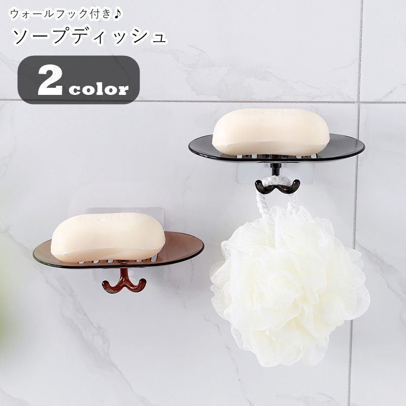 ■ソープディッシュ 石鹸置き せっけん置き 石鹸台 ウォールフック ウォールラック 壁面収納 収納雑貨 壁掛け式 ネジ不要 釘不要