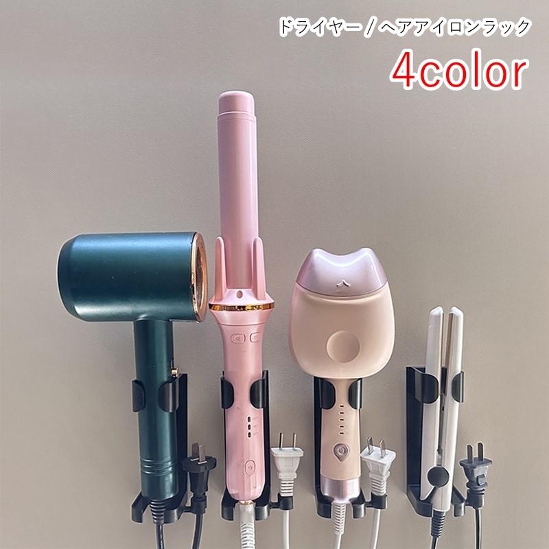 ■ドライヤーラック ヘアアイロンラック 生活雑貨 収納雑貨 壁掛け 縦長 長方形 組み立て式 接着式 防水 ネジ不要 ブラック ホ