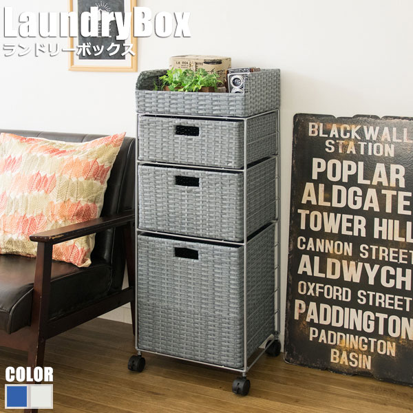 ■Ario アリオ ランドリーボックス (ランドリラック 洗濯かご チェスト アイボリー ブルー 収納雑貨 ラタン アジアン おしゃれ)
