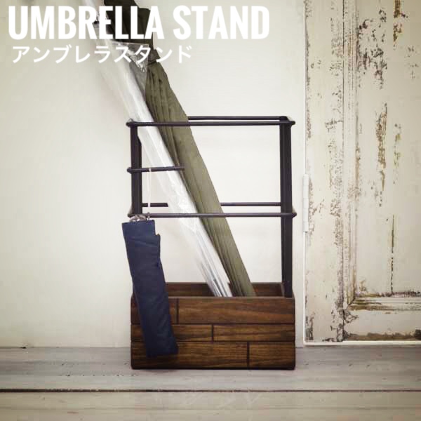 ■OMEGA オメガ アンブレラスタンド (アメリカン 西海岸 傘立て 収納雑貨 ヴィンテージ アイアン 天然木 木製 パイン材 )