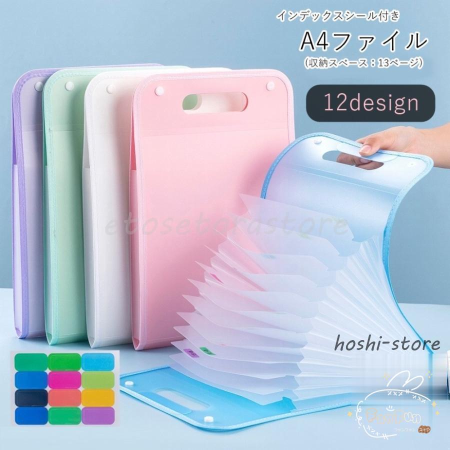 ■書類ファイル A4ファイル バインダー インデックスシール付き ラベルシール付き 収納雑貨 文房具 アコーディオン型 13ページ A4サイズ ス