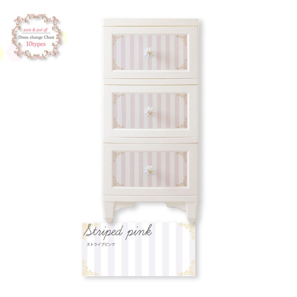 ■衣類収納 タンス 3段 ストライプピンク 日本製 猫脚 姫系 ドレスチェンジ チェスト Liloudecoco リルデココ 収納家具 組立品【代引不可】