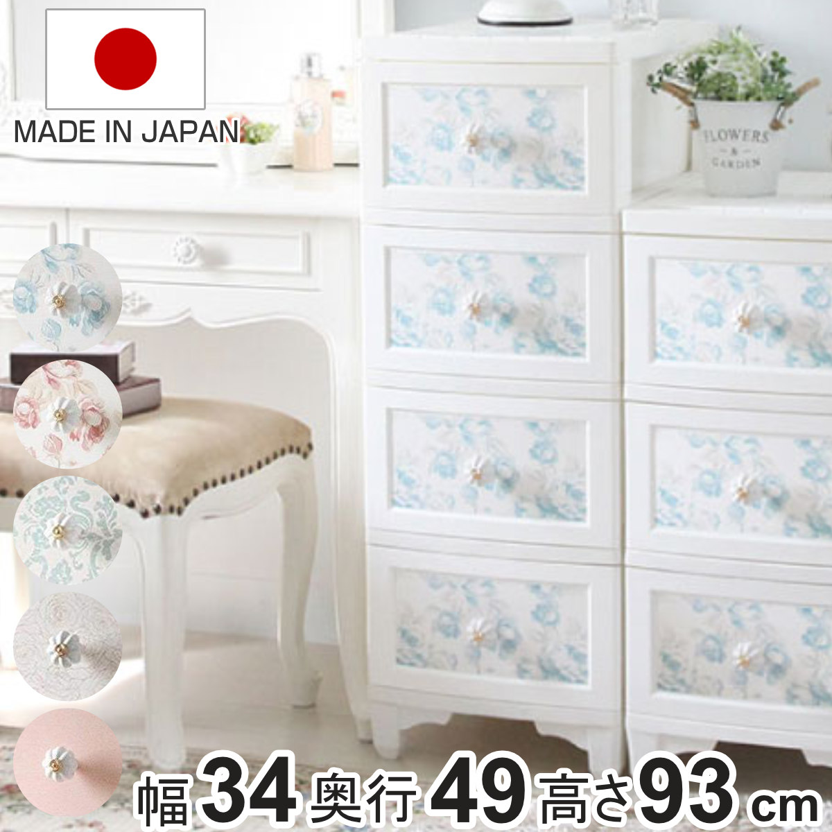■チェスト 4段 ドレスチェンジチェスト アンティーク系 フラワーデザイン ( 幅34×奥行49×高さ93cm 衣装ケース 収納ケース リビング収納