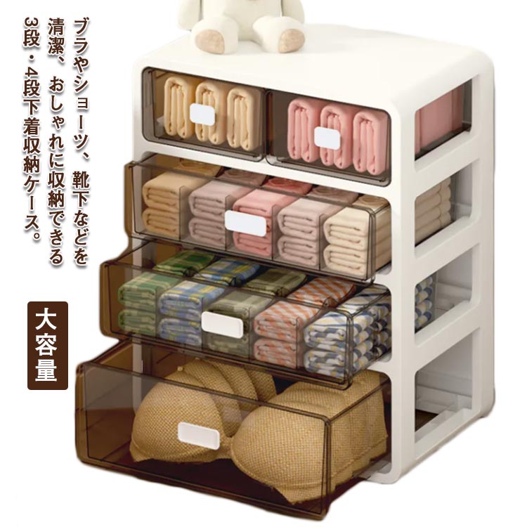 ■下着 収納ケース 引き出し チェスト 4段 透明 仕切り 大容量 ブラジャー 収納 ミニチェスト ブラ 靴下 ネクタイ インナー 整理整頓 下着