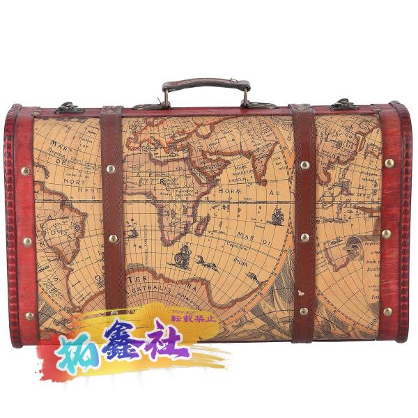 ■ヴィンテージ スーツケース ポータブル ウッド マップ パターン デザイン レトロ ストレージ チェスト 旅行 ビジネス ホームデコレーショ
