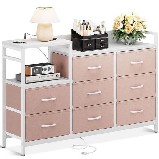 ■KKL チェスト タンス 収納ケース 引き出し 衣類収納 リビング収納 布製 引き出し付き 衣装ケース 箪笥 転倒防止 安定感 3段8杯 (ピンク+
