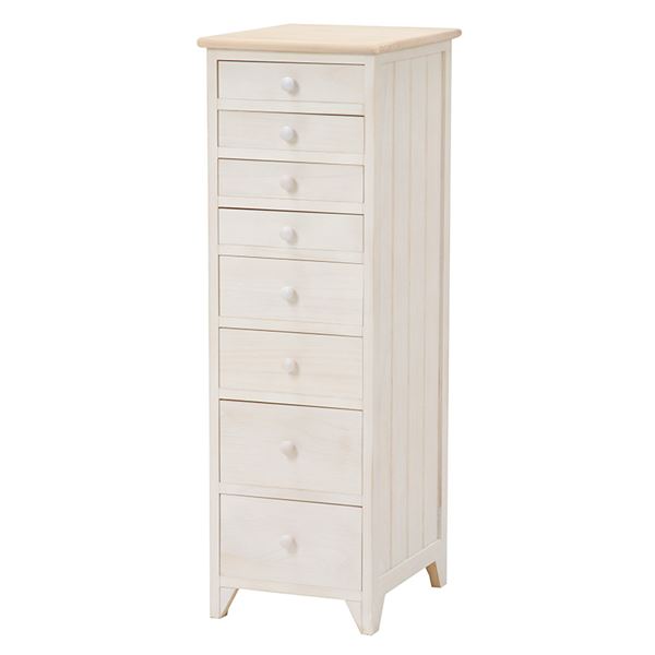 シャビーホワイトの本体にアンティーク調ナチュラルな天板が映える、シンプルチェスト。