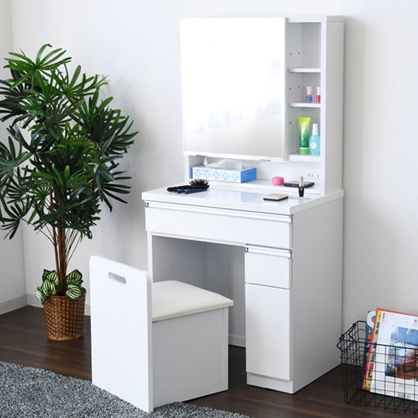 デザイン性も機能性もこだわったコスメボックスです。 一番上の扉を手前に倒すとちょっとした化粧スペースに。 使い終わったらサッとしまえるので見た目も完璧。毎日使うものだから楽に整理出来て便利です。 ■サイズ 本体:65×奥行43×高さ138cm ■材質 表面材/MDF(木製繊維板) 塗装/エナメル塗装 本体/プリント化粧合板