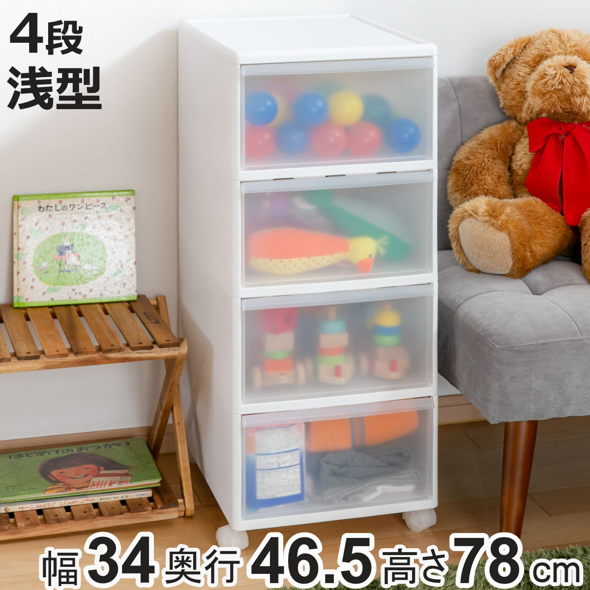 ■収納ケース MOS ワイドストッカー 幅34×奥行46.5×高さ78cm 4段 プラスチック 浅型 キャスター付き ( 日本製 引き出し チェスト 収納