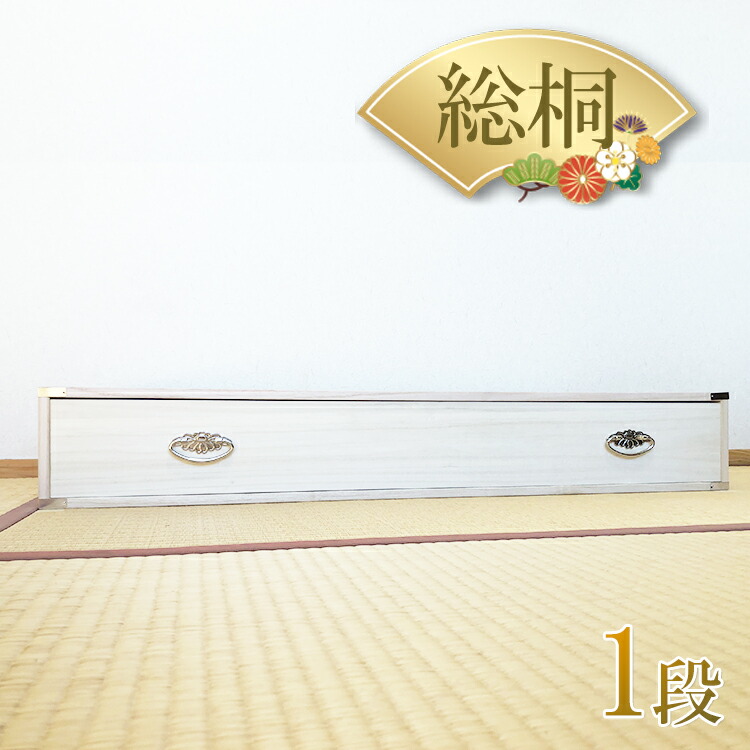 桐たんす 桐 桐箱 1段 【かぐら】 ・詳細【サイズ】本体:幅99cm×奥行き44cm×高さ15cm引き出し内寸:幅94cm×奥行き38.7cm×高さ11cm天板・側板の厚み12mm/引き出し底板厚み3.5mm重量:5kg【仕様】総桐※引き出し底板・背板も全て桐となります。【特徴】:国内有数の家具産地である福岡県大川市。長年桐たんすのみを制作してきた特別工場より桐箪笥職人の手作りにてお届けいたします。着物用として衣類収納として、帯やその他、桐の特性を生かして雛人形を収納したりと、使い用途は様々です。燃えにくいのも特徴で長く保つ上に安全面でも考慮した桐の和箪笥です。クローゼットに置いたりやベッド下収納としてもお使いいただけます。